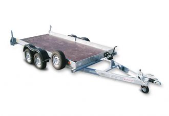 Прицеп Автовоз 2600. Модель 82980А. Для перевозки автомобилей длиной до 4,3 м массой до 2000 кг. Двухосный, с тормозной системой. Резино-жгутовая подвеска. Исполнение + + - с двумя тормозными осями.